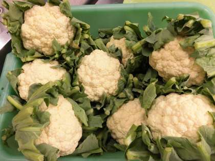 カリフラワーは、「キャベツの花」という意味があります。キャベツと同じ種類の野菜で、11月〜3月ごろにたくさんとれておいしくなります。
