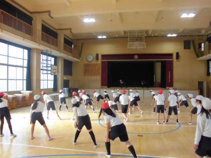 そのほか、サイドの動き、ダウンのリズムの動きなど合計で4つの動きを練習しました。最後に音楽に合わせてダンスをしました。