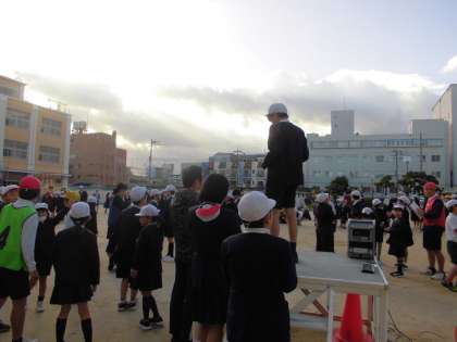 今日の集会では、ヒントから動物を当てる動物クイズをしました。カメレオンやナマケモノなどの動物を当てることができました。1年生から6年生まで協力して答えることができました。