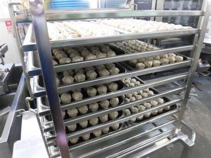 シューマイの皮は、小麦粉に水を加えてねり合わせ、うすく伸ばして作ります。