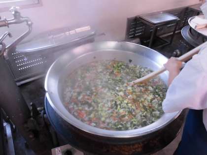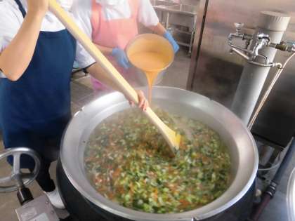 「卵スープ」は、卵の除去食です。卵アレルギーのある人には、卵を入れる前に取り除いて渡します。