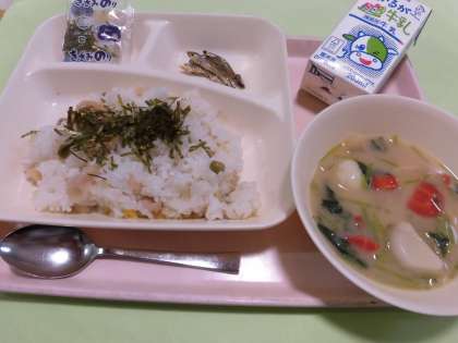 ・れんこんのちらしずし【きざみのり】 ・ぞう煮 ・ごまめ ・牛乳 です。