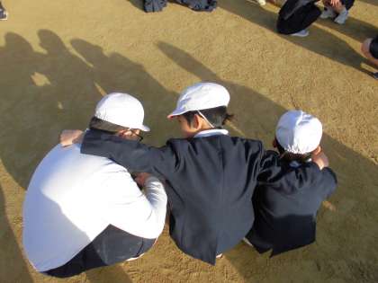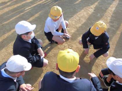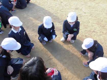 「猛獣狩り」のゲームをしました。児童らは、パンダやレッサーパンダなどの動物の文字数の人数で素早く集まることができました。朝からとても盛り上がりました。