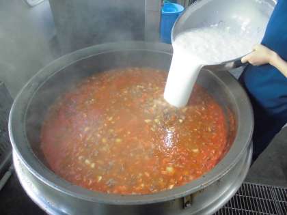 「ハヤシライス」は、牛肉やじゃがいも、野菜を使っています。水どき上新粉でとろみをつけて、煮こんでいます。ラッキーにんじんのプレゼントが入っています。