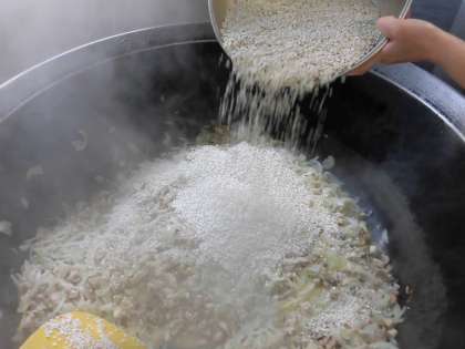 大麦の皮とぬかをとり、蒸して柔らかくなったところをローラーで平たくしたものが「押麦」です。