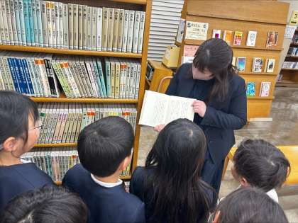色んな種類の本が並んでいるのを見て驚いている様子で、図書館の使い方を紙芝居を通して学んだり、ゆっくり読書をしたりしました。