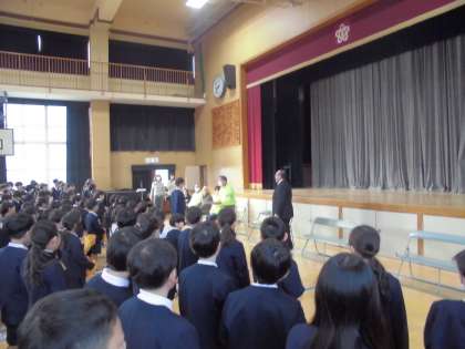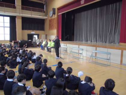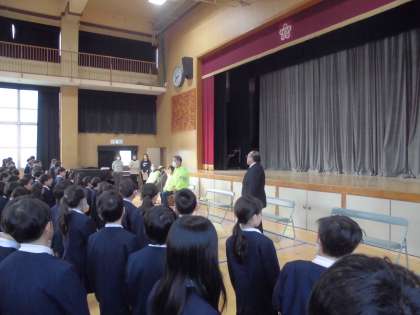 本日の児童集会では、日々、ボランティアで児童の安全な登下校のために見守ってくださっている、見守り隊の方々へのお礼をしました。