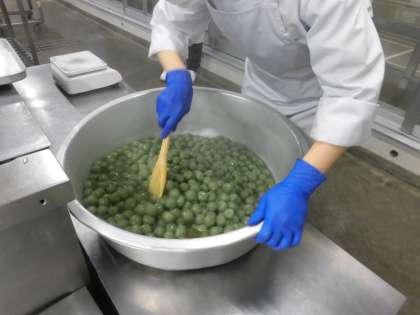 給食のよもぎだんごは、うるち米、もち米、よもぎから作られています。