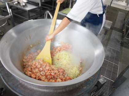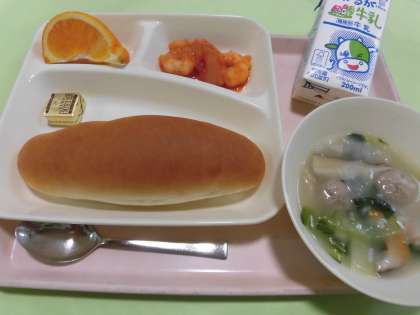 ・えびのチリソースいため ・中華がゆ ・デコポン ・コッペパン ・バター ・牛乳 です。