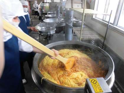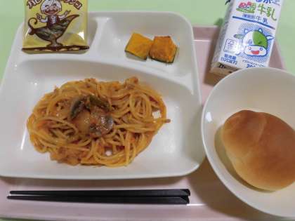 ・ミニコッペパン ・牛乳 ・ミートソーススパゲッティ ・焼きかぼちゃ ・カレーフィッシュ です。