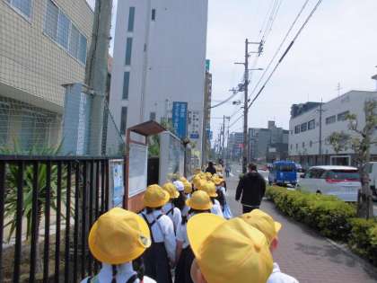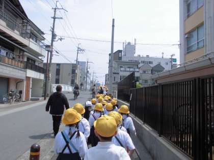 低学年は、実際に学校の周辺を歩いて、交通ルールを守り歩行することを学びました。