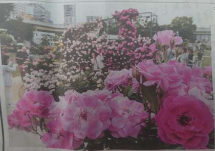 5月16日(金)読売新聞(夕刊)に、「中之島公園にあるバラ園で、ピンクや白のバラが見頃を迎えている。」等の記事と写真が掲載されていました。北巽小学校の校庭にもバラが咲いていました。見つけてください。