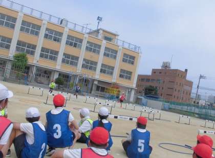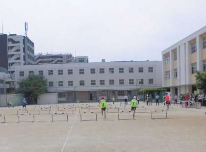 6年生は、体育でハードル走「フラッグハードルりれー」の学習をしました。この学習では「仲間との学び合い」と「リズムカルなインターバルの走り」の2つの大きな目標として取り組みました。この目標に向かって、個人のめあての達成とともに、仲間とのかかわりを深めながら課題解決に向けて一生懸命に取り組むことができていました。