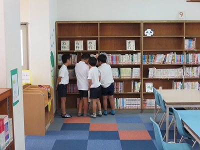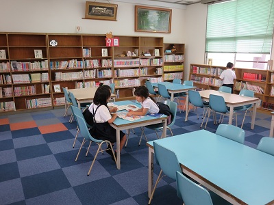 毎週火・金曜日は図書ボランティアの皆さんや図書補助員のご協力で、図書室を開放しています。この日も朝の20分間休み時間に子どもたちが利用していました。