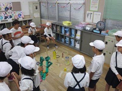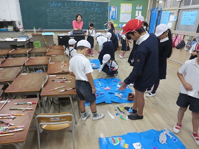 今日は、土曜授業で子どもたちの「手作りのお店」がオープンしました。あおぞら班(異学年)のグループで各教室を回ったり自分の学級の店番をしたりして、半日楽しんでいます。