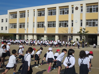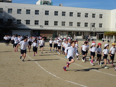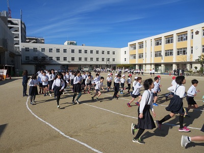 今日から、冬季耐寒運動として「かけ足運動」が始まりました。