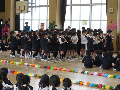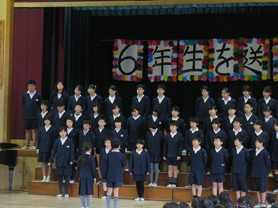 卒業を控えた6年生に、お世話になった1年から5年の児童から、感謝の気持ちや巣立つ先輩への応援歌を贈る会がありました。