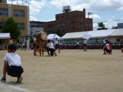 大変遅くなりました。6月4日に行われた運動会の様子を紹介します。写真は1年・2年・応援団です。