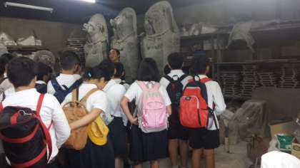 昼食のお弁当を食べたあと窯の見学をしました。すごく大きなタヌキを焼くことができる登り釜などを見ました。このあと宿舎に向かいます。