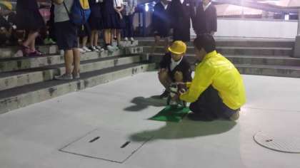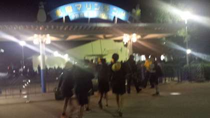 夕食後、マリンランドで夜の水族館を見学をしました。ペンギンを直接触らせてもらったり、エサをまいたり、貴重な体験ができました。
