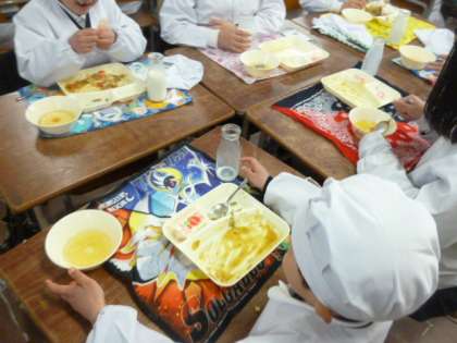 1月22日(月)ふれあい給食を行いました。11月にも行った取り組みです。今回は1年と5年、2年と6年、3年と4年がそれぞれ交流して美味しく給食を食べました。どの学年もしっかりみんなとお話をしながら楽しいひと時を過ごせたかな?
