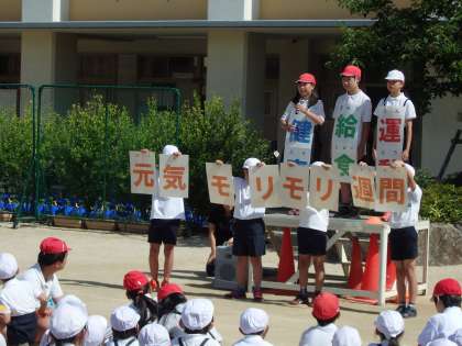 元気モリモリ週間に向けて、健康委員会・給食委員会・運動委員会の委員長から、児童集会で発表をしました。今年度の元気モリモリ週間の合言葉は「元気モリモリズムで1・2・3!」です。早寝・早起き・朝ごはん・運動の大切さについて発表をしました。お家でも規則正しい生活習慣をみにつけられるよう、声かけをお願いします。