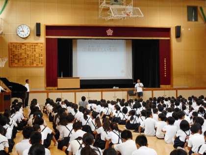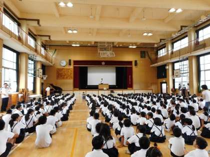 7月20日(金)1学期終業式を行いました。校長先生・生活指導の先生・体育部の先生から夏休みの過ごし方について話がありました。明日7月21日(土)〜8月26日(日)まで夏休みになります。今年は特に暑い夏になりそうです。健康と安全に気を付けて楽しく充実した夏休みになるように、そして2学期の始業式8月27日(月)にみんなが元気に登校できるように、ご家庭でも協力をお願いします。