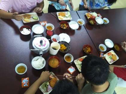 朝食を食べ終わりました。これから魚つかみです。予定している最後の活動になります。