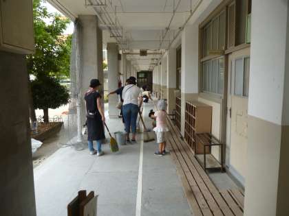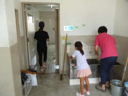 2学期が始まる前にPTAからの呼びかけで、保護者の方々とともに生涯学習ルーム・体育施設開放のかっく団体の皆様にも来ていただいて、清掃活動を行っていただきました。夏休み使っていなかったトイレや教室などとてもきれいにしていただきました。ありがとうございました。