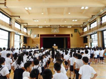 8月27日、2学期始業式を行いました。ほとんどの児童はニコニコ笑顔で登校できていました。始業式では一所懸命に何事にも取り組もうという話と、まだまだ暑い日が続くので健康管理をしっかりしようという話をしました。いろいろな行事を通して子どもたちが健やかに成長するよう学校はサポートしますので、ご協力よろしくお願いします。