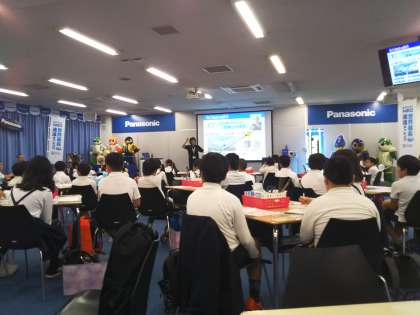 11月6日、5年生は社会見学で守口市にあるパナソニック乾電池工場に行きました。工場の仕事などの説明のあと、オリジナル乾電池を作ったり、工場内を見学したりしました。