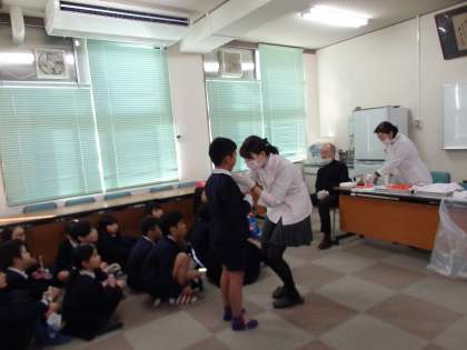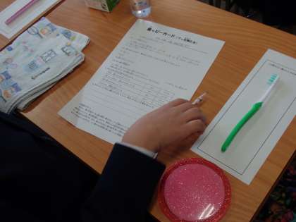 4年生にフッ化物塗布を実施しました。初めに教室で歯科衛生士の方から、歯の役割、どうして虫歯になるのかなどの歯科保健指導をしていただき、その後にブラッシング指導、そして、学校歯科医の新井先生にフッ化物塗布をしていただきました。