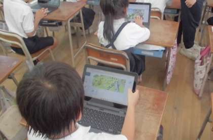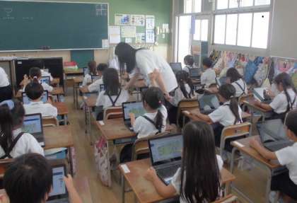 1年生は、タブレットを活用した学習を進めています。操作の仕方とソフトの使い方を学んでいます。今日は、タブレットを使って算数のドリル学習にチャレンジしていました。