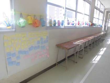 5年生は、ベトナムの提灯、ランタンを色画用紙を使ってつくりました。