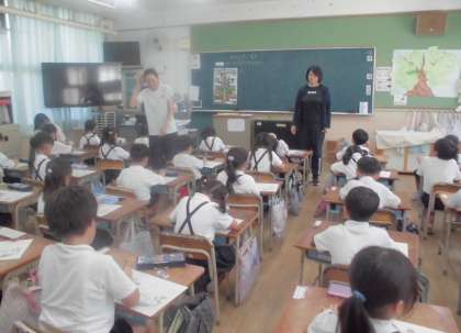 1年生は、学級活動で栄養教諭の先生の食育の授業がありました。