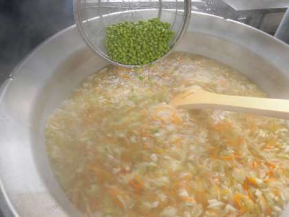 「スープ」は、大豆の除去食です。むきえだまめを入れる前に取り除いて渡します。