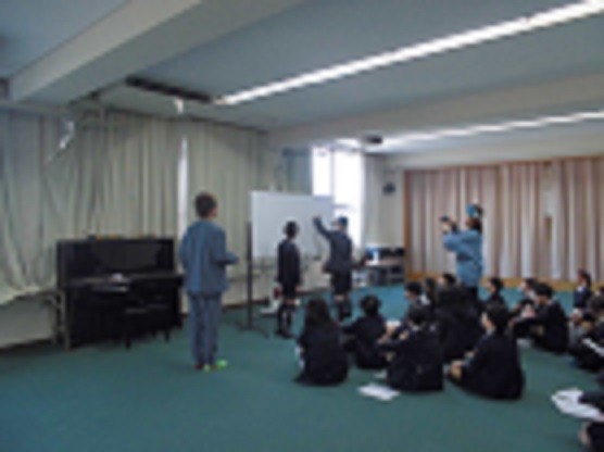 「不思議なクラス」の寸劇をカメラで撮影し、パソコンで動画編集していきました。笑ってしまったり、セリフを忘れてしまったりするなどNGシーンもありましたが、各シーンごとに撮影していきました。いらない部分を取り除く「カット割り」や、動作を「早送り」「スロー」「ジャンプ」など編集していきました。「はやっ」「おそっ」「えーーーっ」等の文字を画面に入れました。、「ガーーン」等の効果音も入れました。