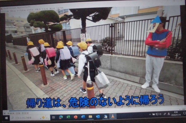 「くらしだマン」からは、「帰り道は、危険のないように帰ろう」等。「まなびだマン」からは、「授業の準備をしてから休み時間に入ろう」等。「おもいだマン」からは、「公園を正しく使おう」等と児童のみなさんに動画でメッセージが送られました。