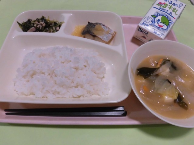 ・さごしのみぞれかけ ・みそ汁 ・みずなの煮びたし ・ごはん ・牛乳 です。