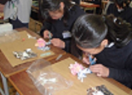 巽小学校区教育協議会はぐくみネットの企画で、卒業式のコサージュを「自分でつくろう!」が実施されました。北巽小学校生涯学習のルームのみなさんの協力のもと、6年生は「自分のコサージュ」を作りました。