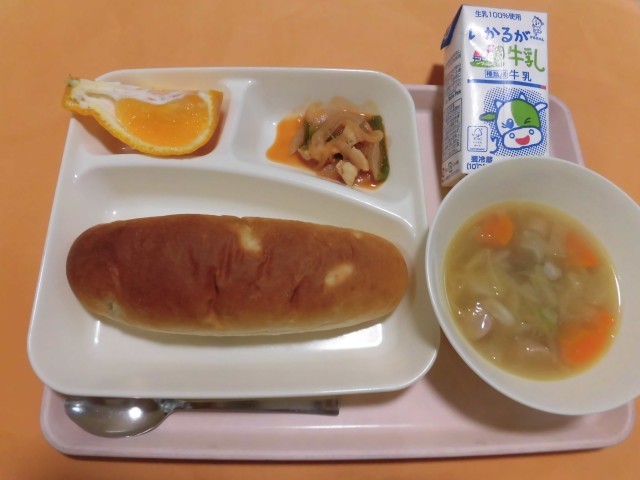 ・ポトフ【大豆除去食】 ・鶏肉と野菜のケチャップソテー ・デコポン ・おさつパン ・牛乳  です。