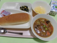 ・ケチャップ煮 ・ささみと野菜のソテー ・りんご ・黒糖パン ・牛乳 です。ケ...
