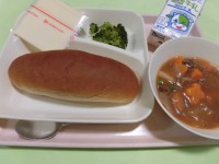 ・ビーフシチュー ・ブロッコリーのサラダ ・スライスチーズ ・黒糖パン ・牛乳 ...