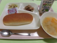 ・とうふのミートグラタン ・じゃがいもと野菜のスープ ・はっさく ・黒糖パン ・...