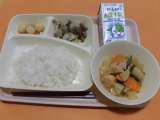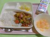 ・チキンカレーライス[米粉] ・キャベツとコーンのサラダ ・白桃(カット缶) ・...