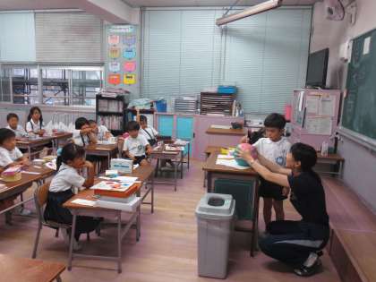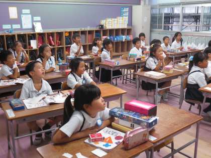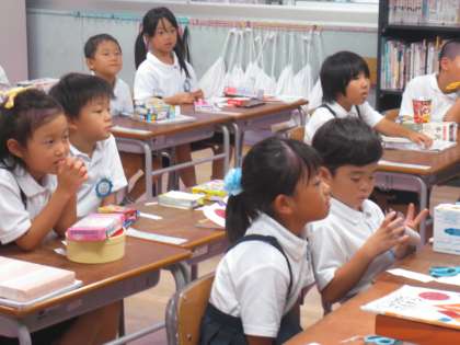 3組では、算数の「かたちあそび」の勉強をしています。いろいろな形に興味を高めていました。