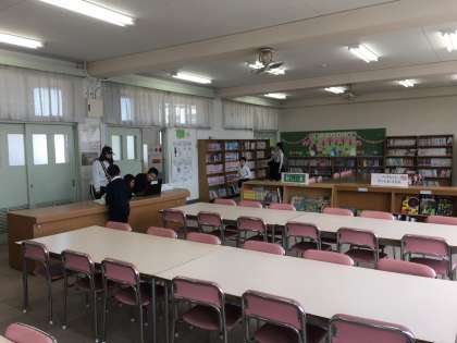 今週から図書館開放が始まっています。今日木曜日は学校図書館ボランティアの大久保さんに開けていただいています。