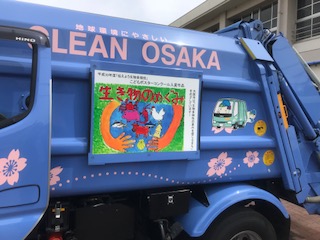 パッカー車の横には、昨年「伝えよう生物多様性」
