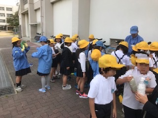 に、車両や作業服の説明を受け、パッカー車への乗車