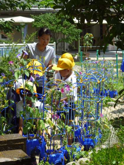 懇談会のあと、お家の人に持って帰ってもらい、夏休みは、お家で「あさがおの観察」をします。